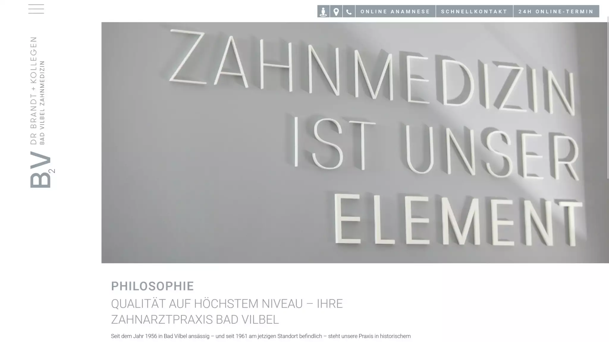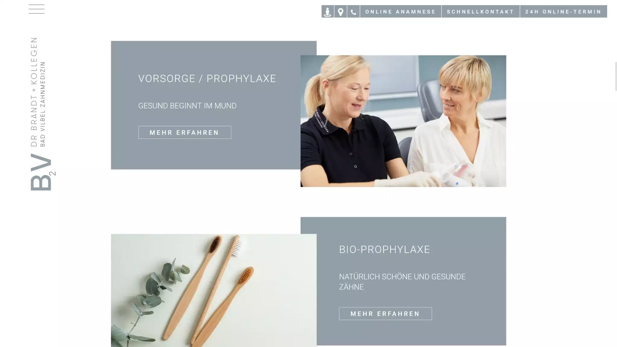 Die Zahnarztpraxis B2V Dr. Brandt + Kollegen in Bad Vilbel vertraut uns als langfristigen Partner für alle digitalen Themen. Von der laufenden Website-Wartung über Content-Updates bis hin zur strategischen Marketingberatung — wir betreuen den gesamten digitalen Auftritt der Praxis.